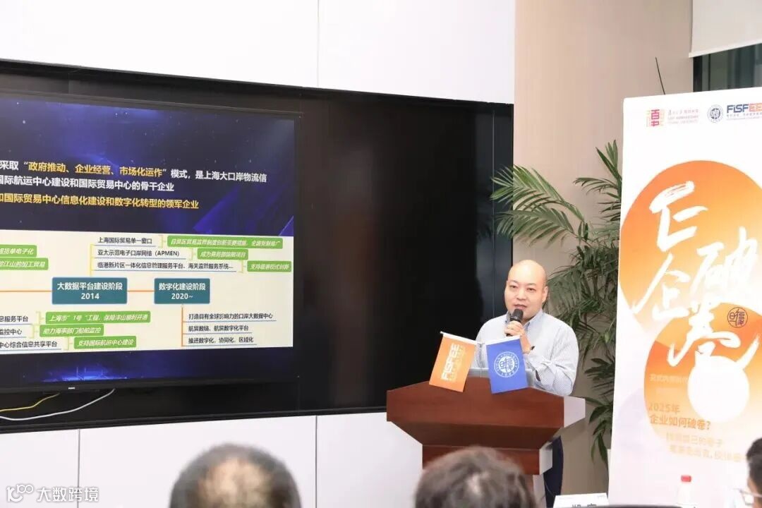 为更好的助力长三角地区贸易高质量发展,近日,虹桥海外发展服务中心联合复旦大学国际金融学院举办“智行全球·合规致远:共探出海新趋势与新路径”主题活动。亿通国际常务副总经理卫小明受邀出席,以“智慧物流体系建设助力企业出海新路径”为题,分享亿通在智慧物流体系建设和航贸数字化领域的创新实践。