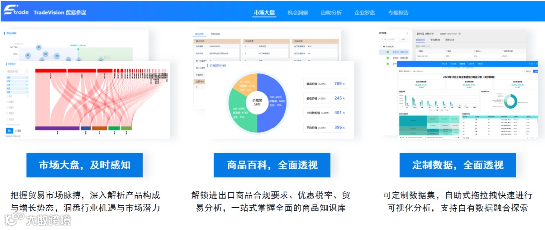 【贸易参谋产品介绍】贸易参谋覆盖200+国家/地区市场和9000+种商品信息,通过市场大盘、机会洞察、商品透视和自助分析等辅助企业挖掘进出口热门或潜在的商品和市场,掌握合规和准入要求,为制定市场策略提供决策依据