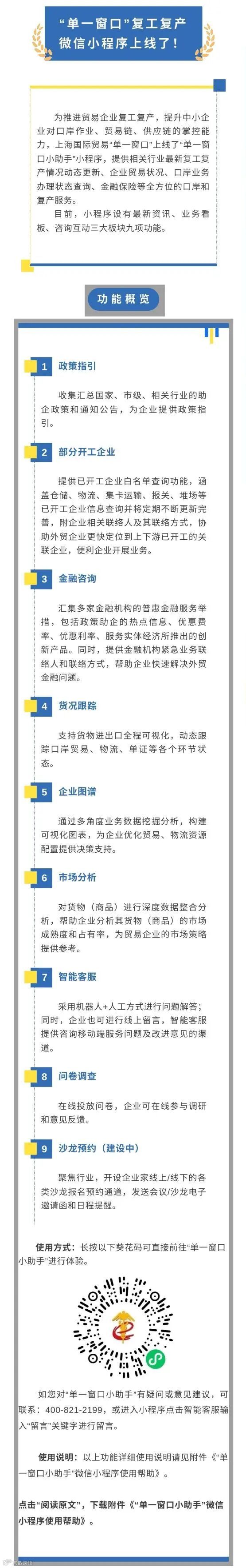 上海国际贸易“单一窗口”复工复产微信小程序上线了!