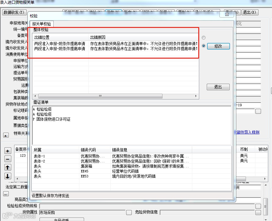 1、报关单中所有商品系统系统会根据业务要求做判定,对于不满足条件的系统会做出提示。