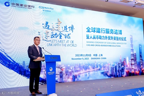 2023年11月9日,在第六届进口博览会 “遇见进博,链动全球”全球建行进博签约仪式暨人民币国际化报告发布会上,中国(上海)国际贸易单一窗口(以下简称“单一窗口”)携手建设银行正式发布了“进口支付借款2.0版”产品。中国国际进口博览局、上海市商务委员会、中国人民银行上海总部、亿通国际、建设银行等单位参加此次活动。