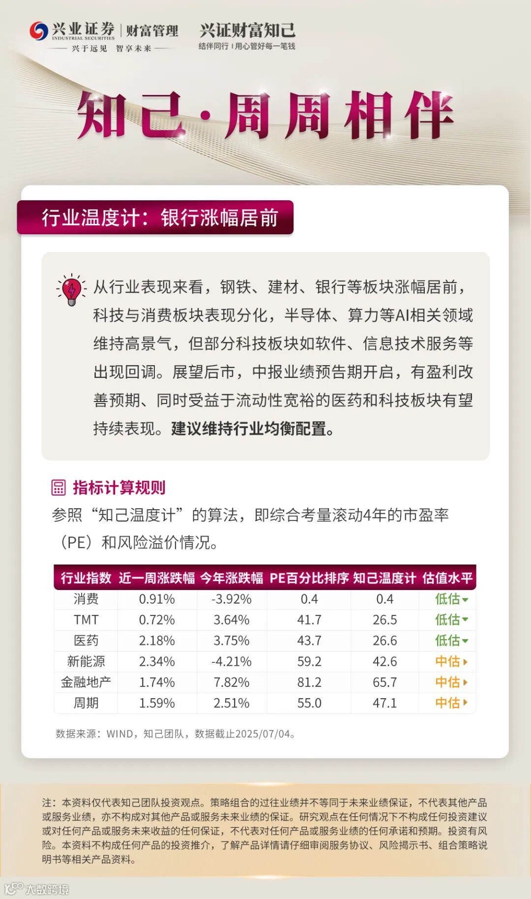 知己·温度计是我们团队设计的一款小工具,他可以清晰地显示市场当前整体所处的估值水平。随着市场不断地由整体走向结构,我们每周为您更新股市温度、债市温度、行业温度、市值温度、券种温度。根据市场温度,为您的每一笔资金做好资产配置,买入合适比例的权益和债券资产。