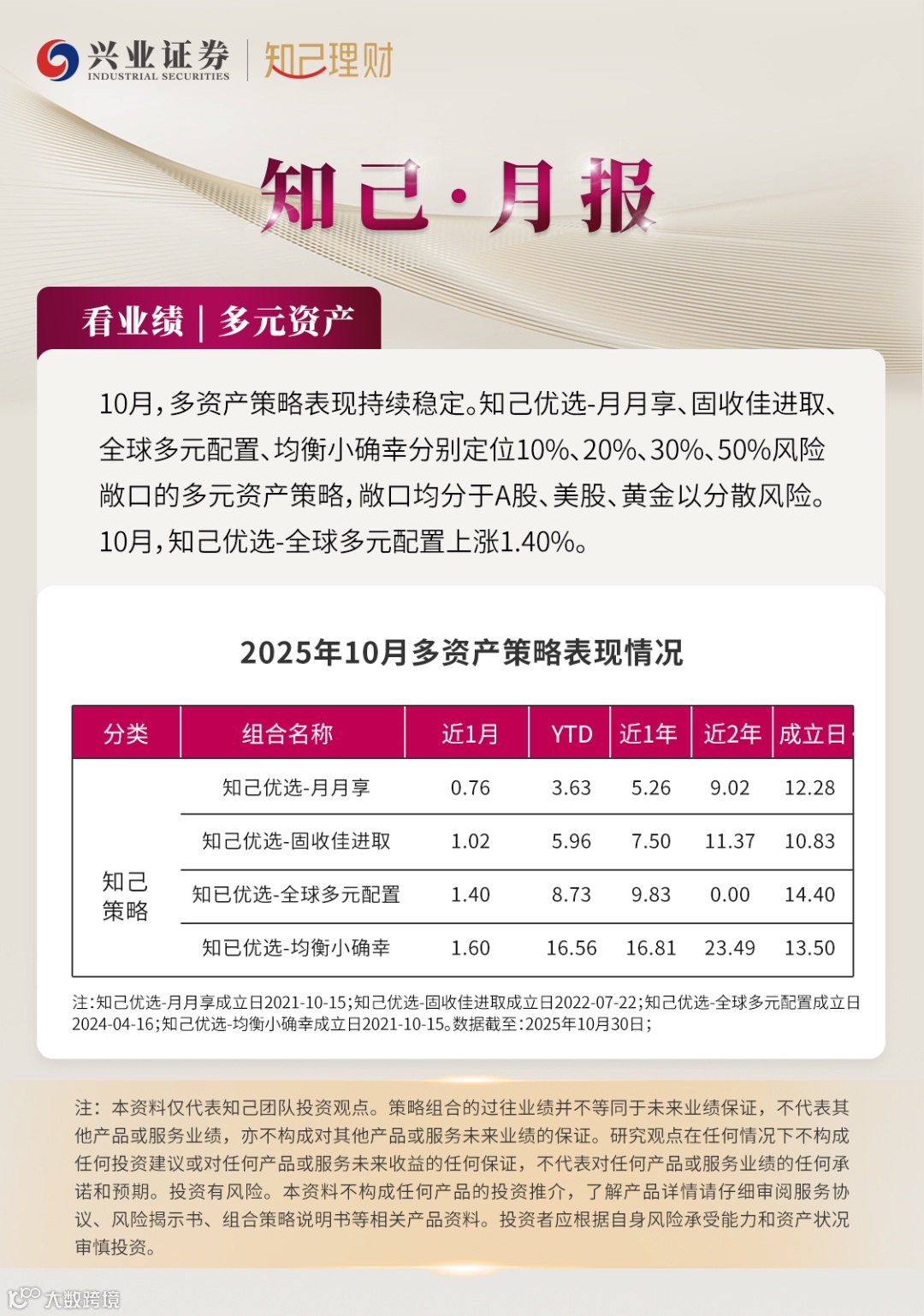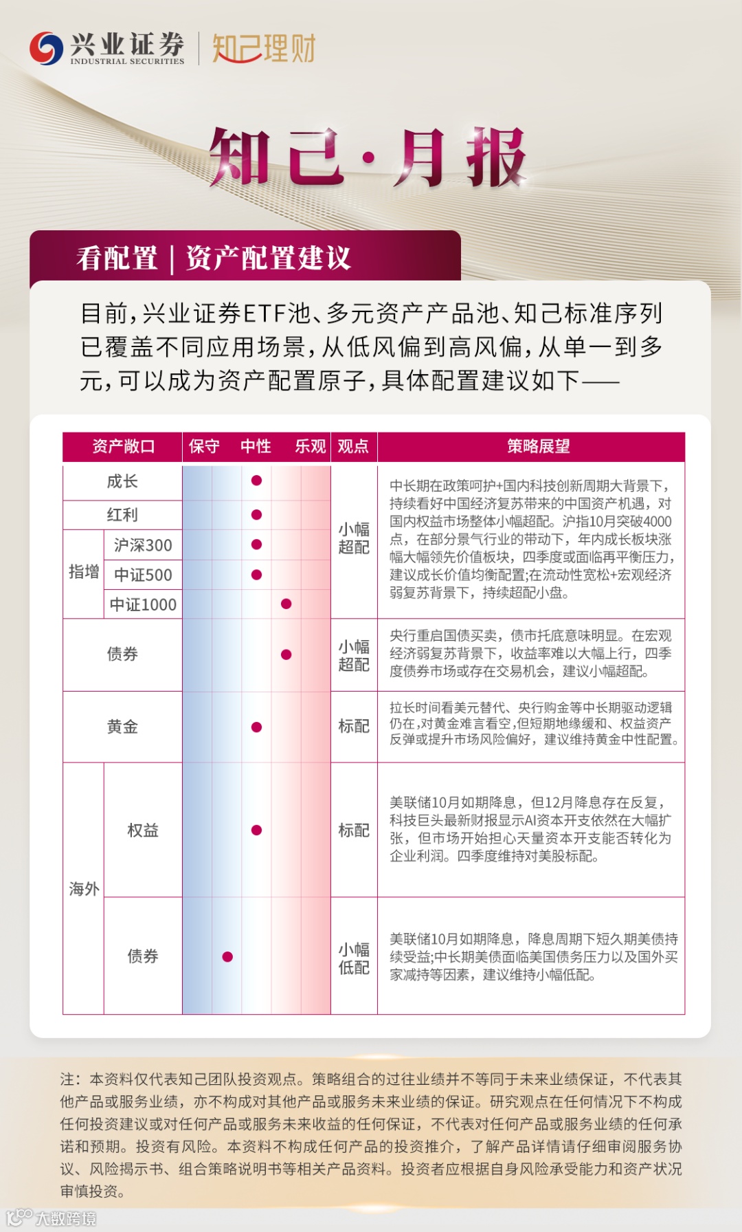 本材料在任何情况下均不构成任何要约或要约邀请,报告中所含数据、信息和观点等也不构成任何投资建议或收益暗示。读者不应仅依据此材料所载明的数据来作投资决定,而应仔细阅读现行有效的产品说明书或相关法律文件来获得包括风险因素在内的进一步的详情。