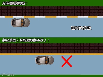 ◇黄白相间的标线只允许临时(短时间)停放,黄色标线禁止停放(长时间、短时间都不行)。