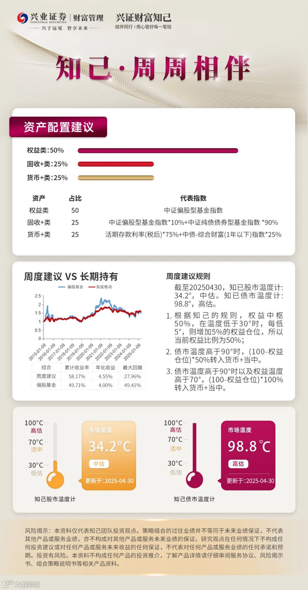 知己·温度计是我们团队设计的一款小工具,他可以清晰地显示市场当前整体所处的估值水平。随着市场不断地由整体走向结构,我们每周为您更新股市温度、债市温度、行业温度、市值温度、券种温度。根据市场温度,为您的每一笔资金做好资产配置,买入合适比例的权益和债券资产。