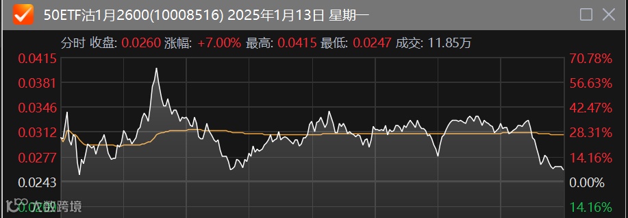图三,2025年1月13日,上证50ETF沽1月2600分时图,数据来源:Choice