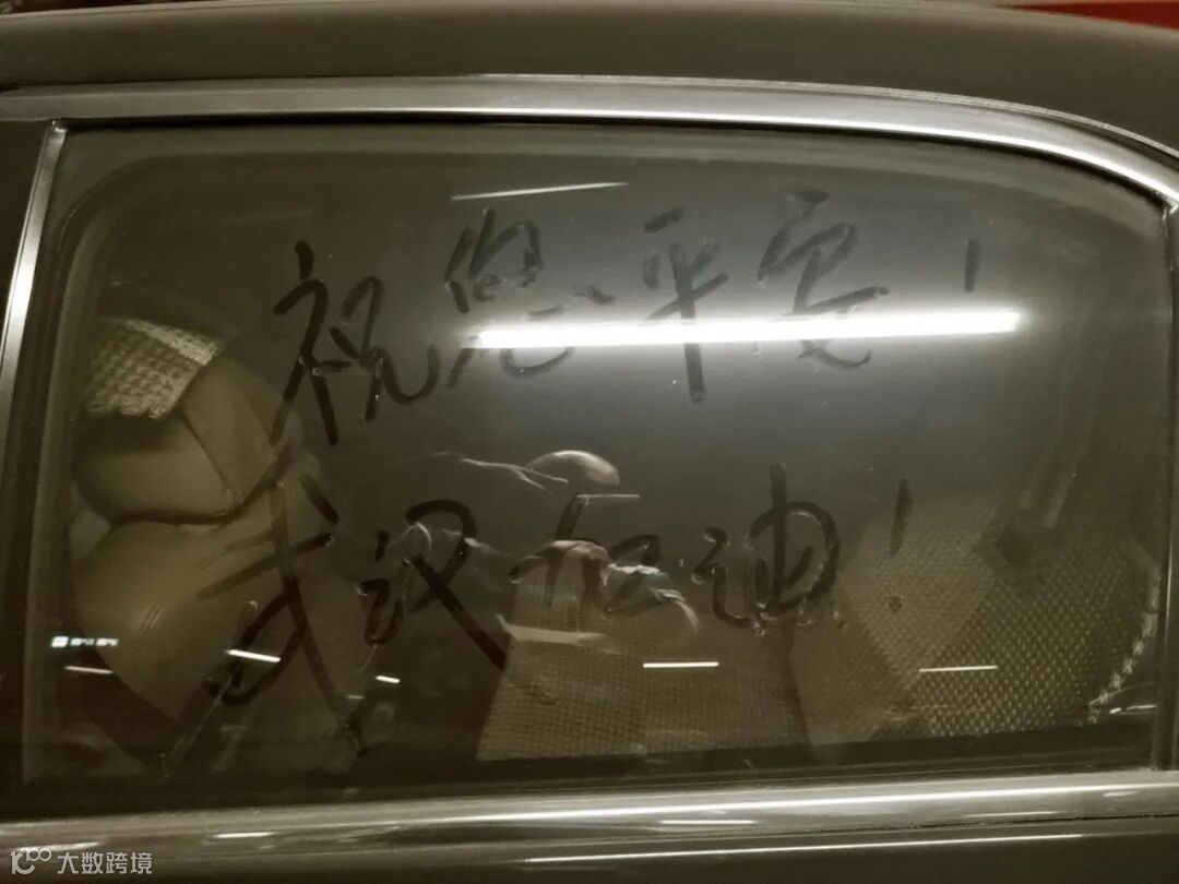 A:我是1月21日返回武汉,4月8日武汉解除封城第一天坐火车返回工作地济南的,在武汉总计滞留了78天。4月12日晚上,我去检查停在车库的汽车是否有电,下车时站在车旁我突然看到后窗户写着“祝您平安”,因为反光我没有看得特别清楚,我就凑进去看了一下,旁边还有“武汉加油,必胜”几个字。我当时一下子就愣住了,站在那儿一直没动,然后突然一下子就忍不住哭出来了,当时大概是晚上十点钟,地下停车库没有什么人,因此哭的声音还比较大。