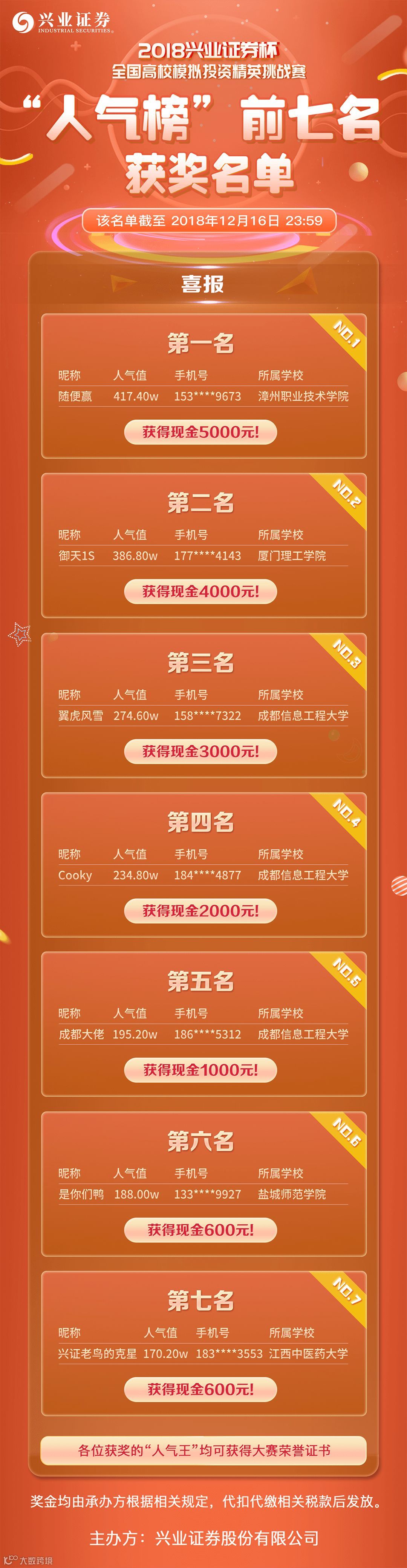 人气榜前七名获奖名单