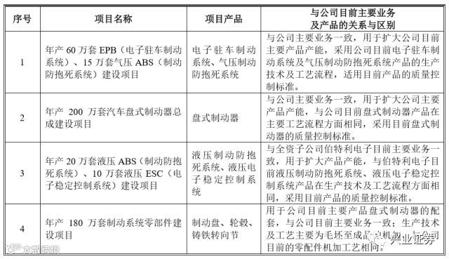 公司的主营业务是汽车制动系统相关产品的研发、生产和销售,主营产品包括机械制动领域的盘式制动器、轻量化制动零部件、真空助力器,以及电电控制动领域的电子驻车制动系统、制动防抱死系统和电子稳定控制系统等。公司所处行业为汽车及汽车零部件行业中细分的汽车制动系统行业,是汽车制造专业化分工的重要组成部分。