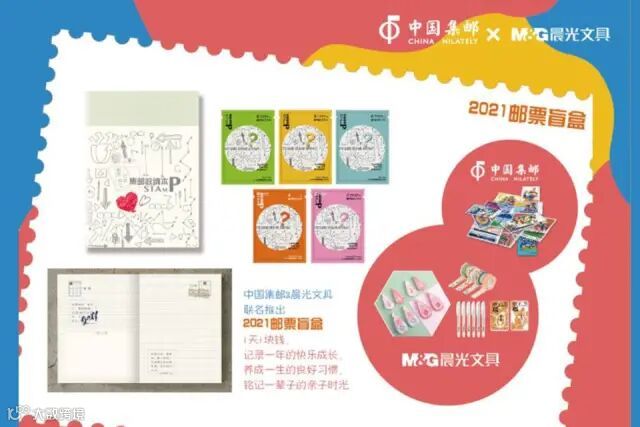 包含:2021年发行的纪特邮票、小型张(含小全张,下同)、小本票、个性化服务专用邮票和赠送版各1套;邮票收纳册1本;文具周边(包含新年限定款笔袋、春夏秋冬四季限定款高端文具约10余款、盲盒款徽章、专属明信片等)