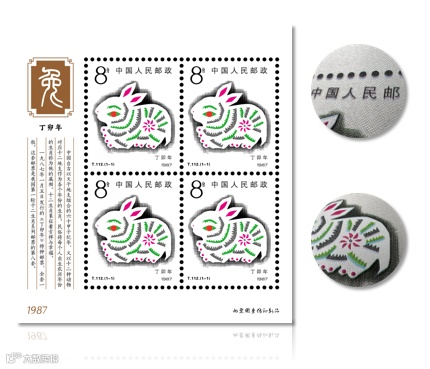 T.112《丁卯年》特种邮票丝绢仿印四方连纪念张1版,