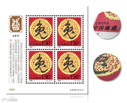 1999-1《己卯年》特种邮票丝绢仿印四方连纪念张2版。