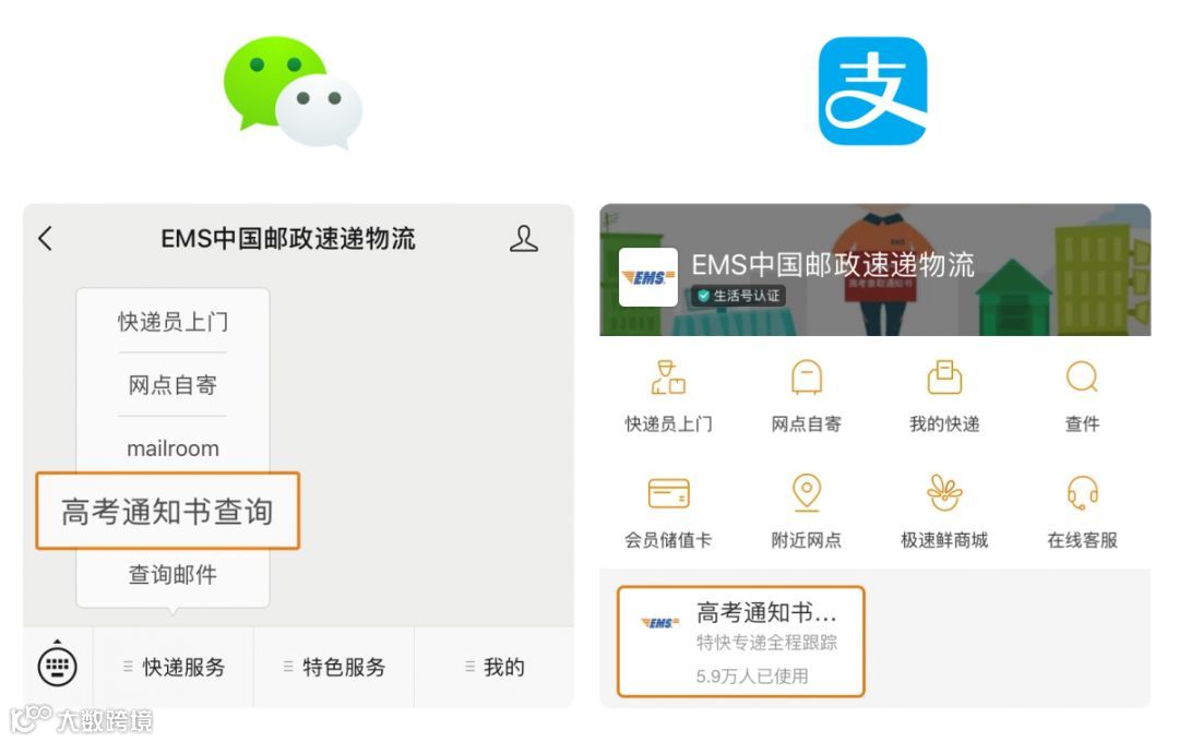 使用「EMS中国邮政速递物流」微信公众号&支付宝生活号或「上海邮政掌上营业厅」微信公众号通知书查询服务,输入考生号/准考证号即可快速查询。