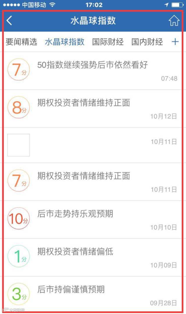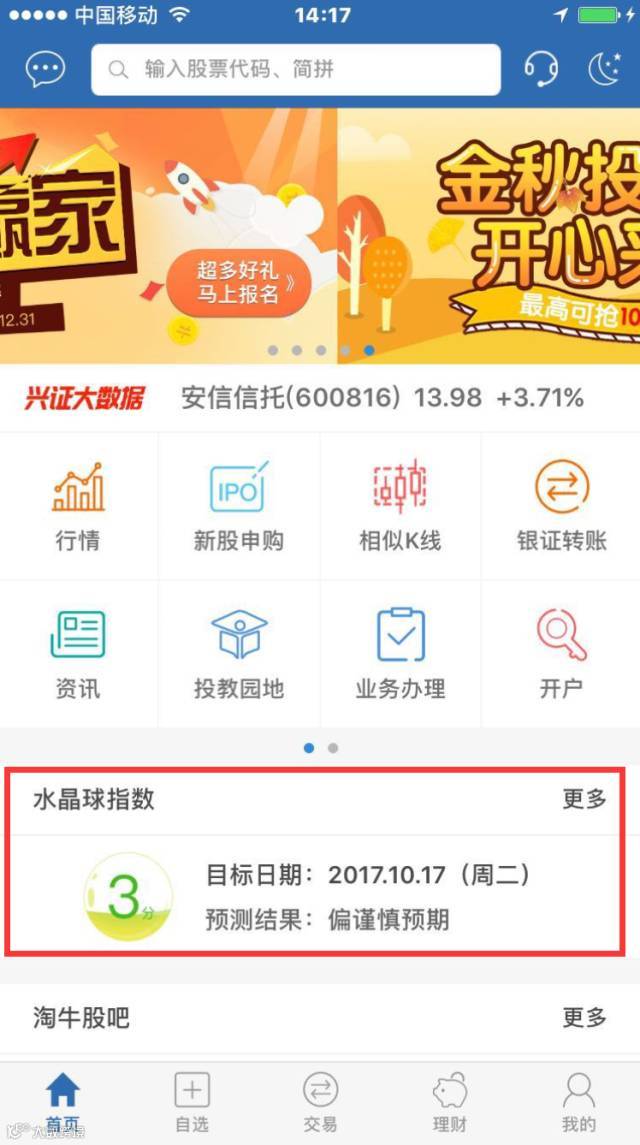进入优理宝APP首页,水晶球指数就在中间