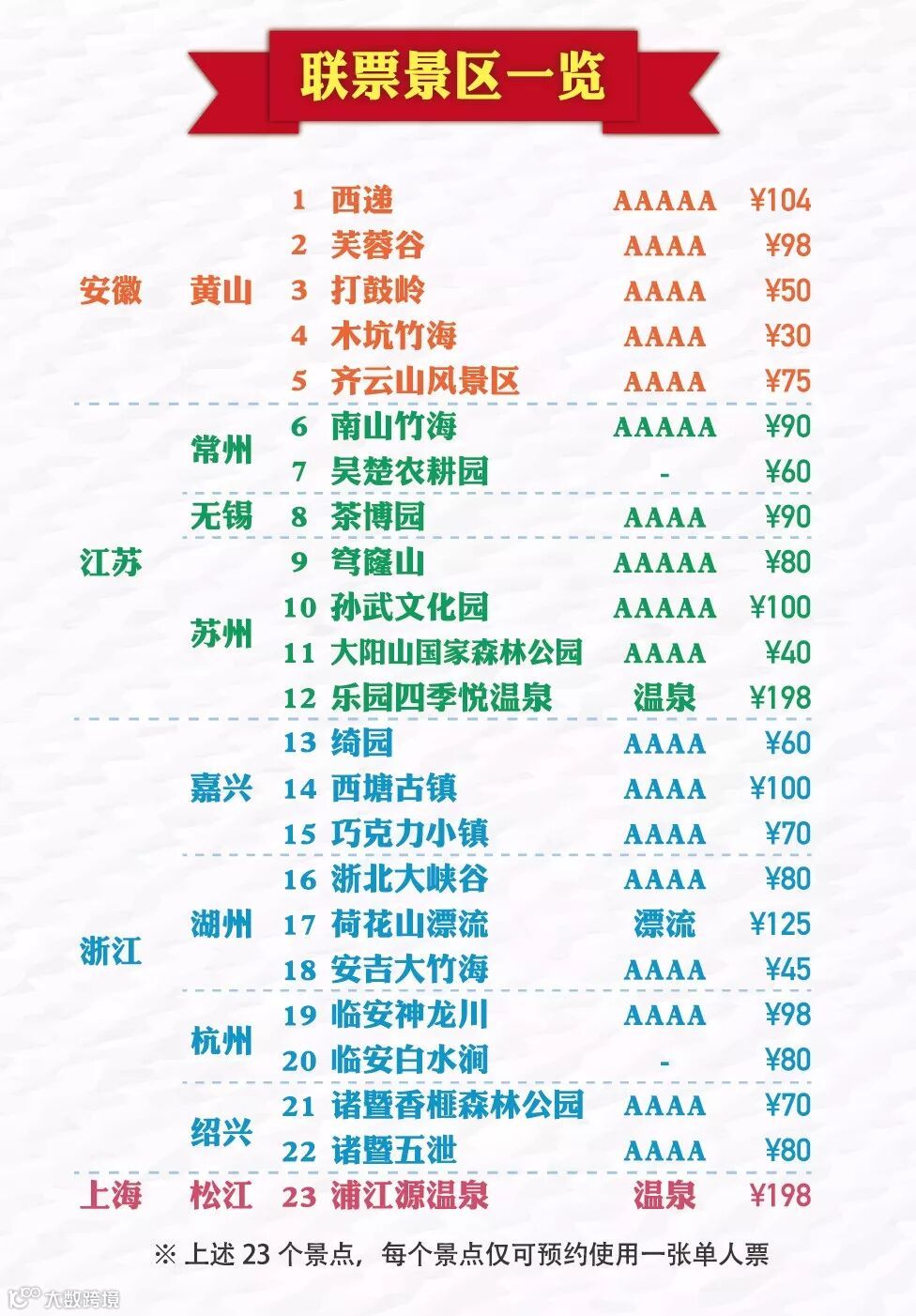 一晚酒店免费住宿+23个景区门票