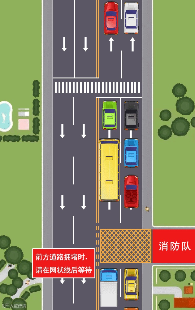 3、左转方向交通阻塞的,左转车道内车辆要等待。