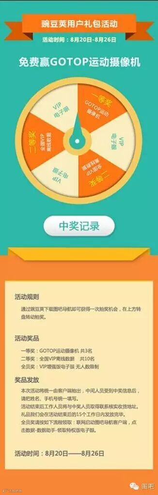 使用豌豆荚下载图吧导航即可获得一次抽奖机会。打开图吧导航进入应用首页,点击右侧“活动礼包”进入活动页面,随后点击转盘即可抽取大奖。