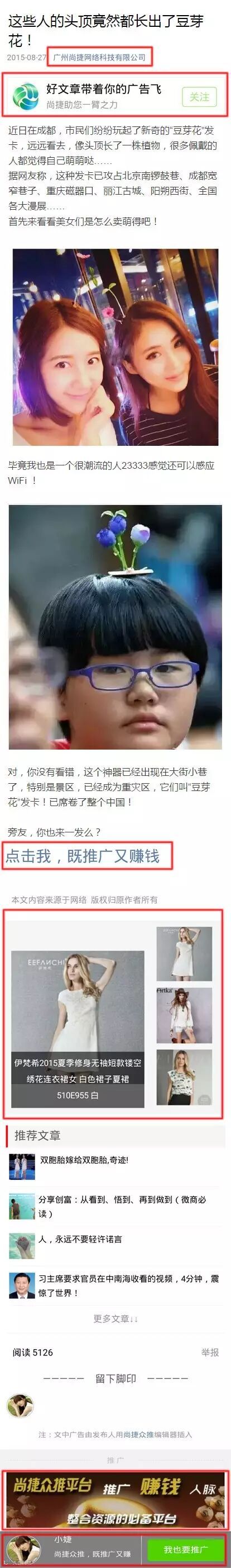 想被无数人看到,ok,尚捷众推平台就能帮到你!你只要把想发的图片广告、产品广告、平台连接广告和文字广告设置好,系统将自动植入你看到的任何一篇文章里,热门文章更好!随着大家的大量转 发,从而产生快速裂变,你的广告也就铺天盖地的被人看到,这种宣传是无形的裂变推广,更是不被人反感的最有力的宣传!