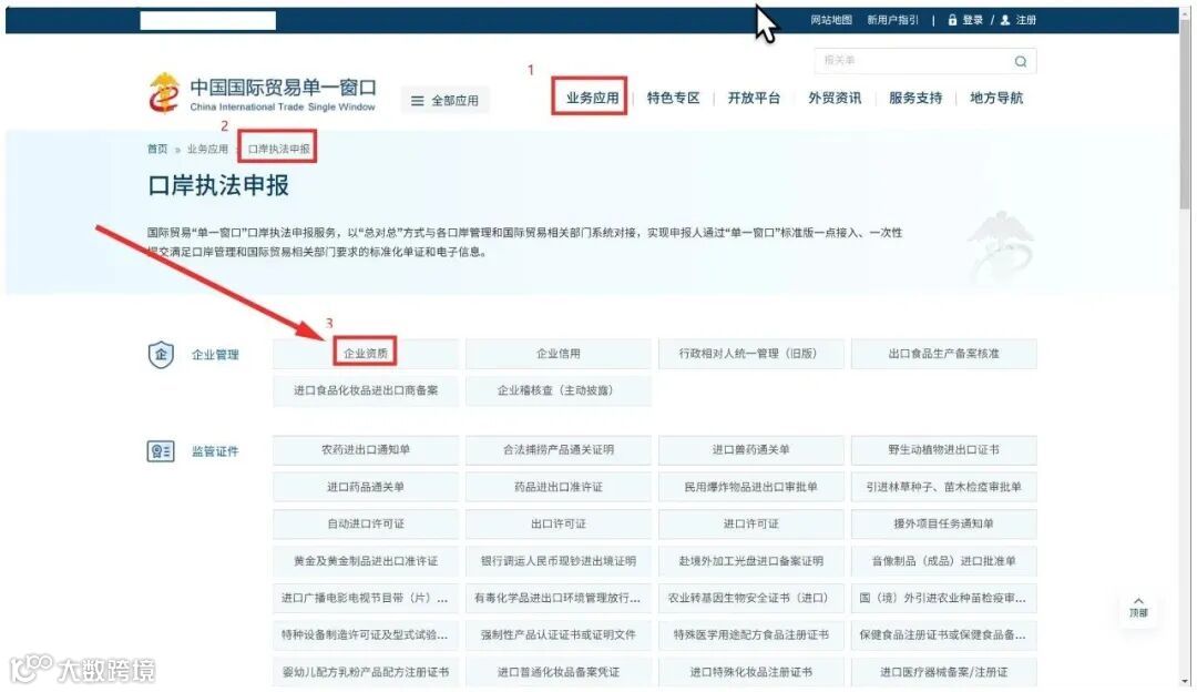 尚未在“互联网+海关”注册用户还应首先注册账号。