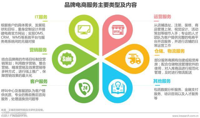 本报告中,定性部分的品牌电商服务是指在电子商务活动中服务商为品牌商提供的部分或全部电子商务服务,包括IT软件服务(如ERP、CRM系统,商品管理工具等)、营销服务、运营服务(如代运营)、仓储物流服务以及客户服务等。品牌电商服务行业属于服务输出型行业,得益于电子商务的快速发展的背景下品牌商拓展电商业务的刚性需求。