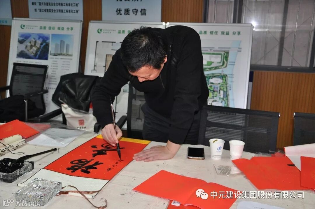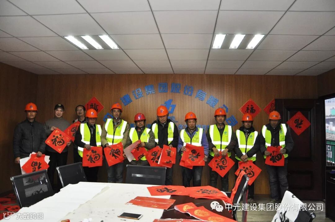 在吉祥喜庆的氛围中,陈国平副总裁将一幅幅象征着喜庆,蕴含着祝福的“福”字和春联送到工人手中,使工人们感受到了组织的温暖和关怀。最后大家一起合影留念。