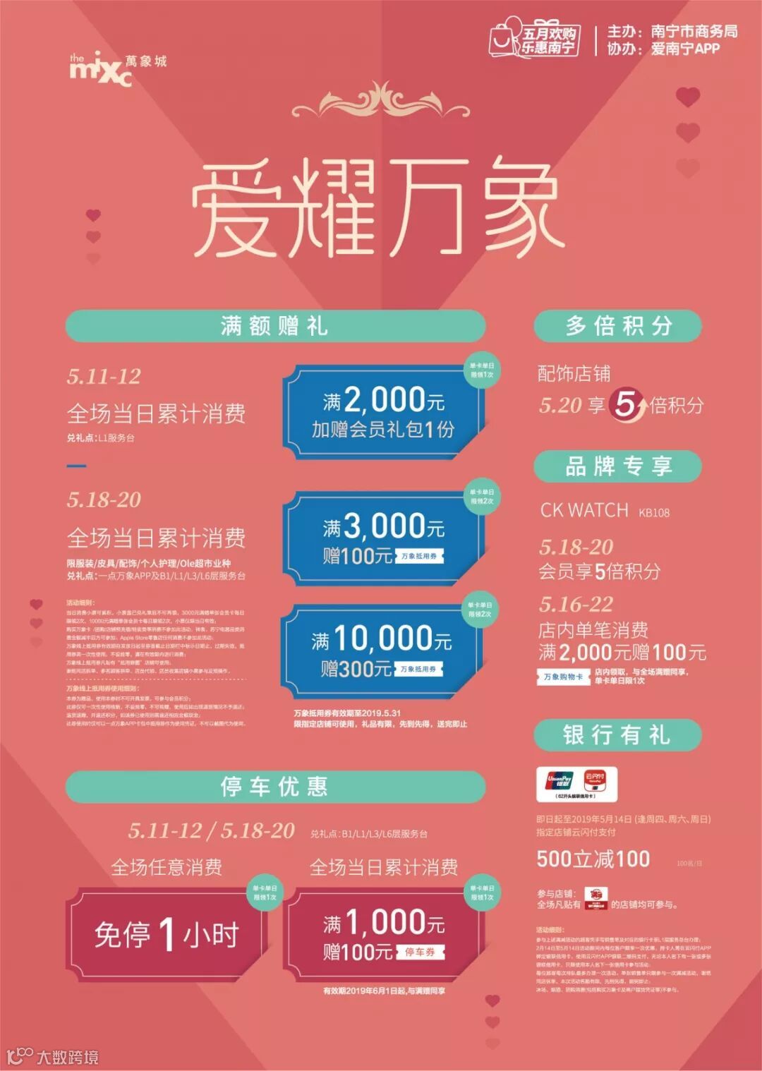 此活动由南宁市商务局主办、“爱南宁APP”协办,更多优惠信息请前往宁家鲜生、万象城、会展航洋城、南宁百货、新梦百货了解~