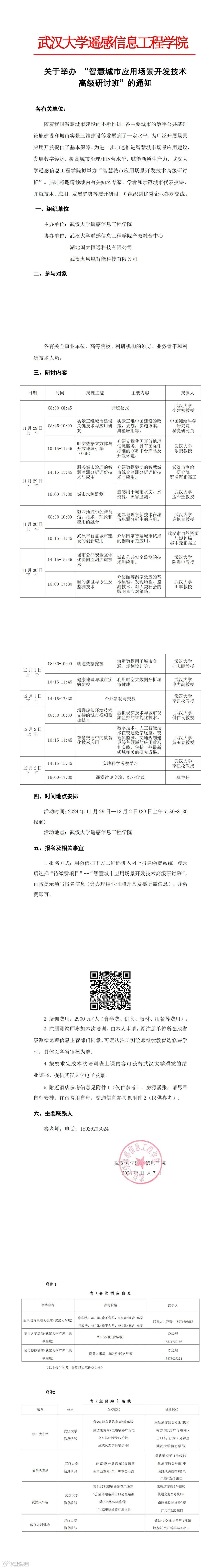 随着我国智慧城市建设的不断推进,各主要城市的数字公共基础设施建设和城市实景三维建设等发展到了一定水平,为广泛开展场景应用开发提供了基本保障。为进一步加速推进智慧城市场景应用建设,发展数字经济,提高城市治理和运营水平,赋能新质生产力,武汉大学遥感信息工程学院拟举办“智慧城市应用场景开发技术高级研讨班”。届时将邀请领域内有关知名专家、学者和示范城市代表授课,并就技术、应用、发展趋势等展开研讨,并组织到优秀企业参观交流。