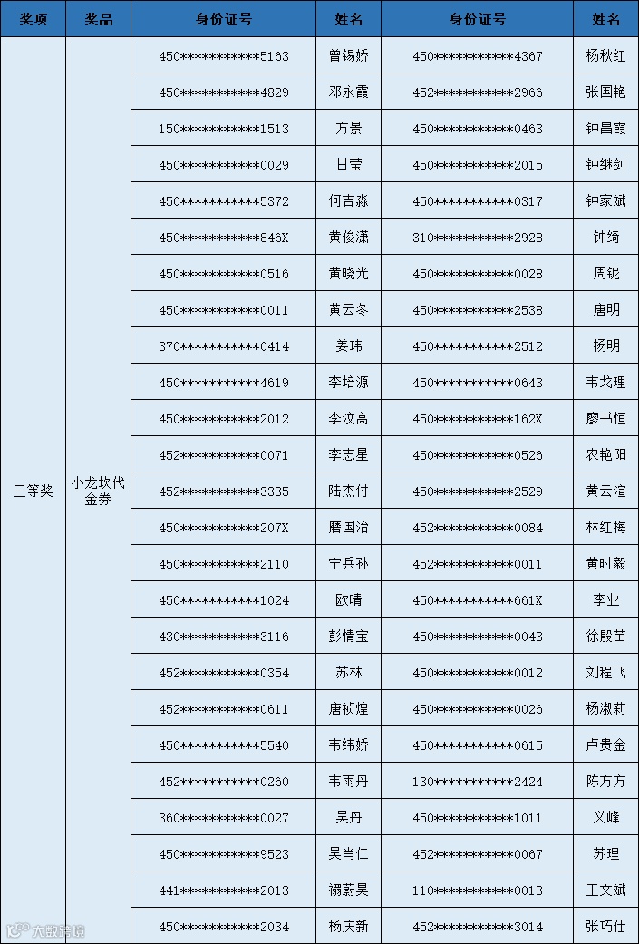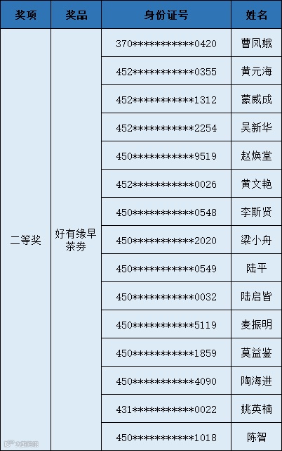 恭喜以上中奖用户