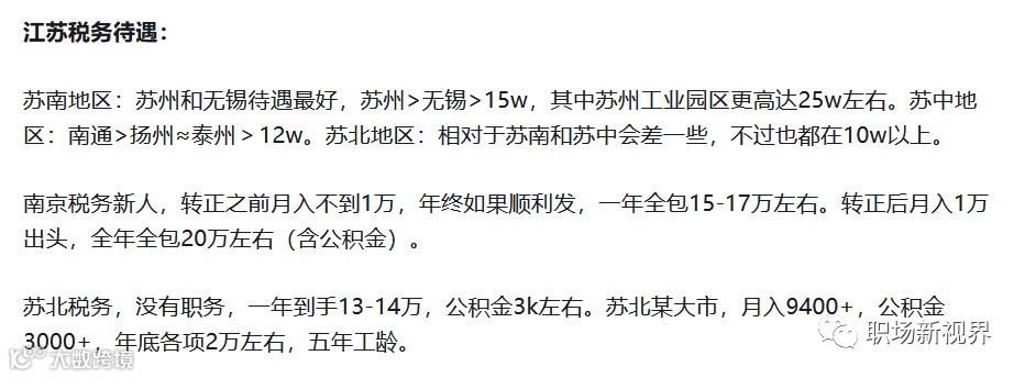 苏中地区:南通、扬州和泰州等城市的税务员工年薪大致在12万元以上。