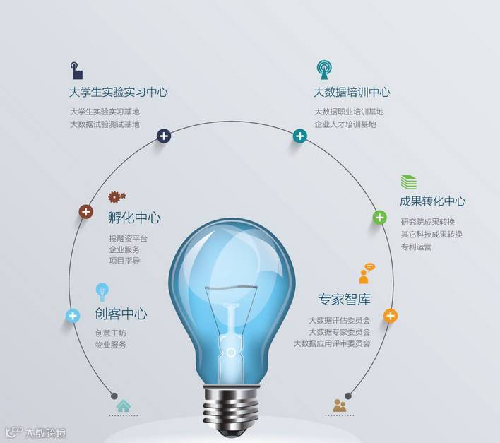汇集海内外大数据尖端人才,引入一批大数据领域技术创新型企业,为人才和企业团队提供良好的创业环境,如提供免费办公区域、企业数据样本、大数据研发工具以及技术咨询等。