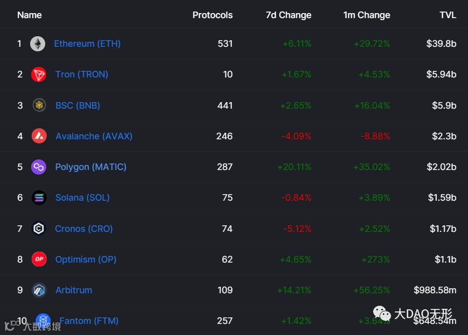 前几个月牛市的时候,当时波场的排名还没这么高,Luna、Solana、Polygon等的TVL都一度排在前列,但是美联储一加息,币价一暴跌,大家的TVL也瞬间崩盘。