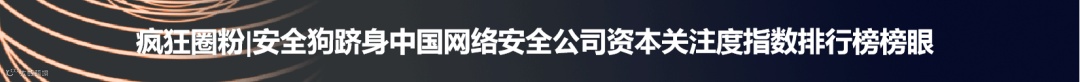 在全面且稳定的优秀产品基础上,安全狗的市场触角不断延伸。外加多项技术研究成果的证言,以及国内外权威专业机构的好评,赋予了安全狗的未来发展潜力,同时也吸引了多家投资机构问询。前不久,安全狗还跻身第三方专业咨询机构发布的《2021年Q1中国网络安全公司资本关注度指数排行榜》,评分排名第二。(点此查看)