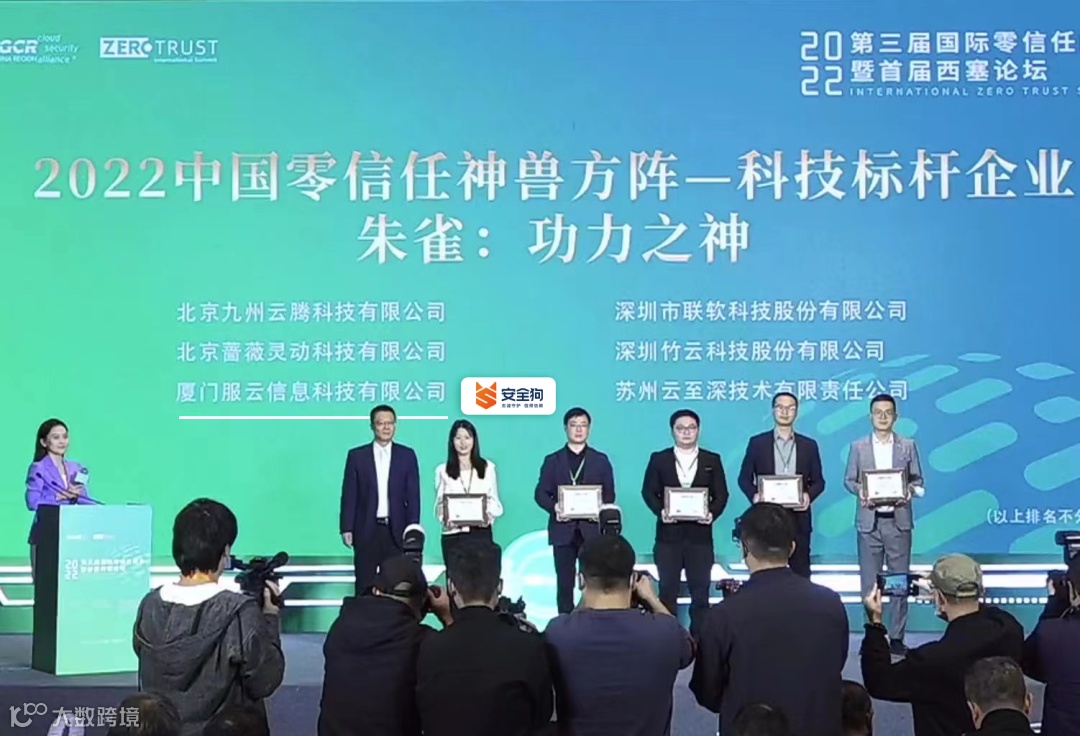 安全狗依托落地零信任概念的最佳实践产品云隙,荣获2022中国零信任神兽方阵-科技标杆企业称号,位居“朱雀-功力之神”。