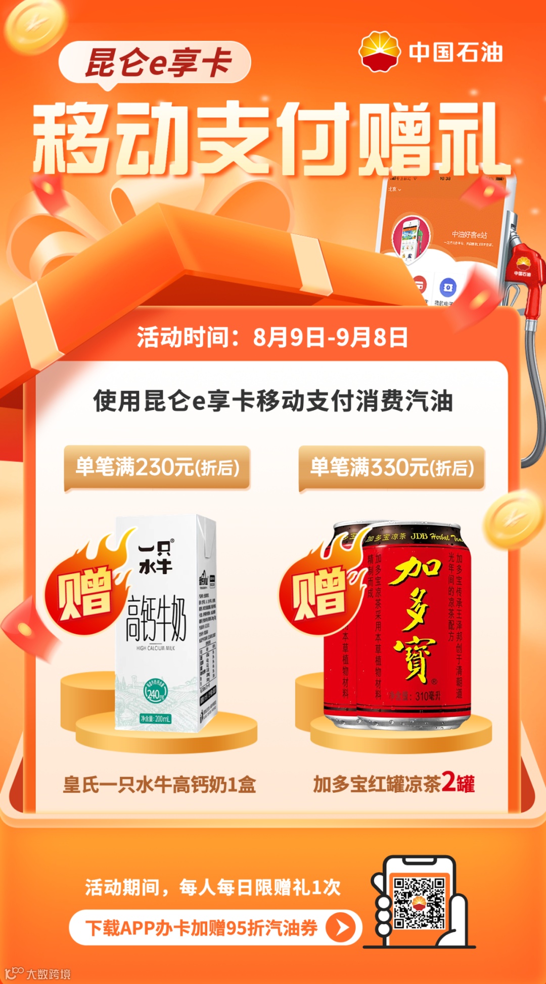 8月9日至9月8日,单笔加汽油满额