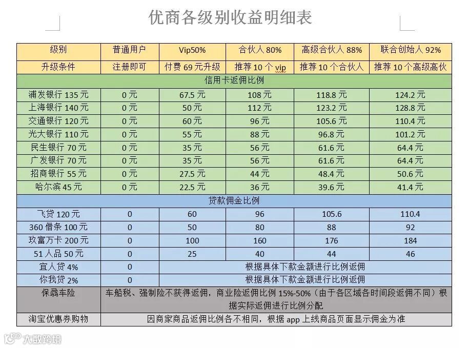 它不是银行、信贷公司、保险等这样的机构,但是可以通过优商时代办理车险、保险、信用卡、贷款;