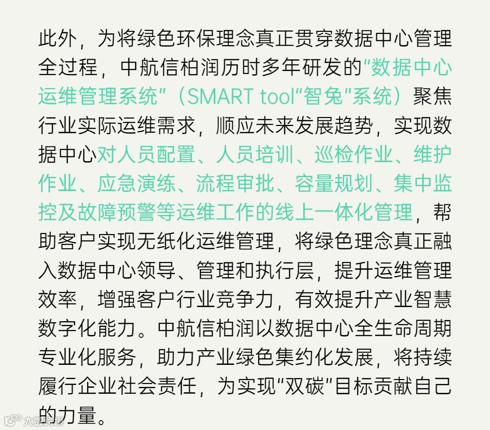 北京中航信柏润科技有限公司是专注于数据中心基础设施领域,以数据中心全生命周期管理的理念,依托专业服务团队和丰富实践经验,聚焦数据中心全生命周期各关键节点,为客户提供从建设咨询、测试验证、绿色评估到运维管理、市场运营等一系列服务的专业化企业。