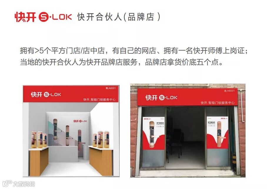 我们的快开SLOK合伙人模式也比较容易理解,分为快开合伙人(推广大使)/快开合伙人(安装师傅/网点)快开合伙人(品牌店)不管您是有门店、个人还是团体,都可以加入快开合伙人 ,登陆系统中购买一把智能锁(金额大于1000元)即可成为推广大使;