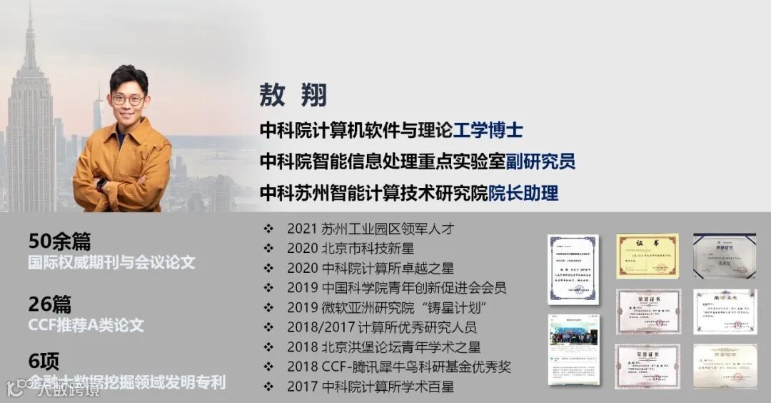 敖翔博士目前是中科院计算所智能信息处理重点实验室副研究员、中科苏州智能计算技术研究院院长助理。他在智能金融领域拥有丰富的研究经验,累计发表50余篇国际权威期刊与会议论文、26篇CCF推荐A类论文,拥有6项金融大数据挖掘领域发明专利。曾入选北京市科技新星、中国科学院青年创新促进会会员、微软亚洲研究院“铸星计划”。