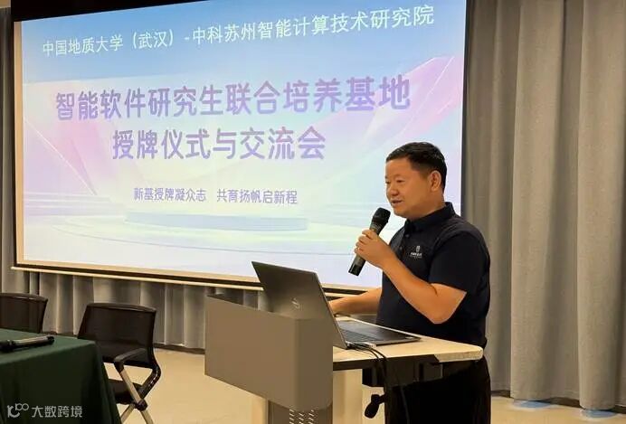 活动伊始,IICT常务副院长张佩珩发表致辞,他首先对地质大学计算机学院李书记一行人的到来表示了诚挚的欢迎,期待在苏州这座人杰地灵的古城共同培育研发类人才,通过整合地质大学的学科优势,培养具有"智能+行业应用"复合型人才。