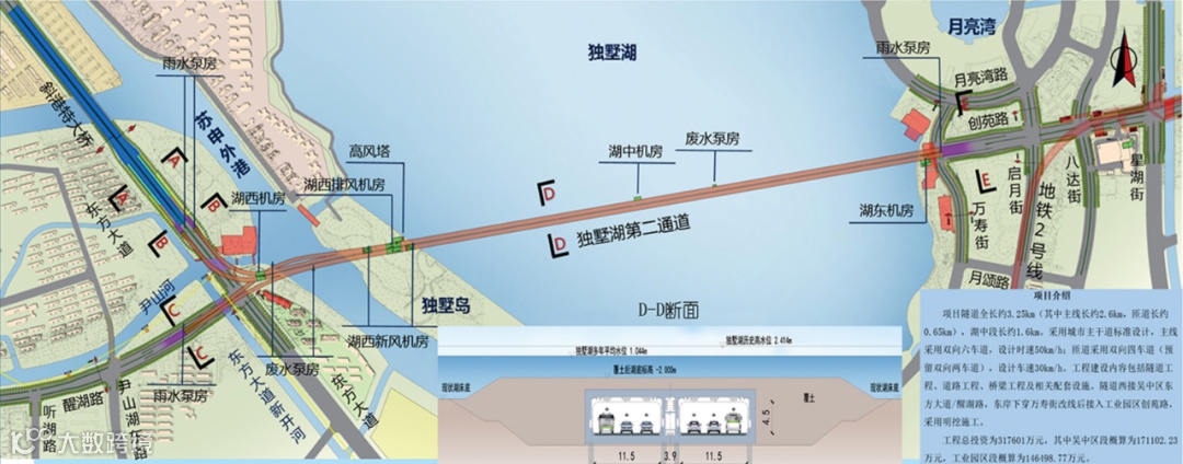独墅湖第二通道项目西起吴中区东方大道,向东以隧道方式穿越独墅湖,后接苏州工业园区创苑路,隧道全长3.33公里,计划2022年建成通车。
