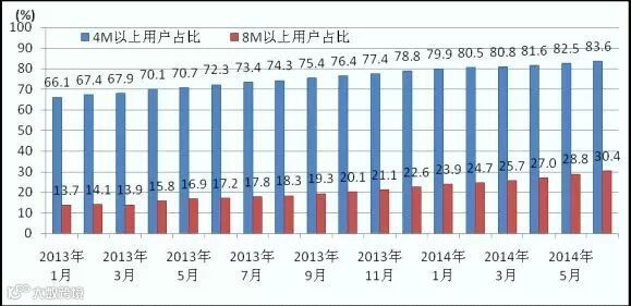 图3 2013-2014年互联网宽带接入8M以上用户占比情况