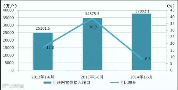 图10 2012-2014年1-6月互联网宽带接入端口发展情况