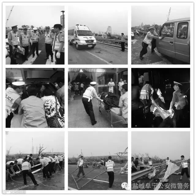 灾害发生后,阜宁境内多条道路受损。其中,204国道、阜益线上电线杆、广告牌大量倒伏,交通一度中断。交警和交通协管员全力清除路面上被风刮倒的树枝、电线杆、广告牌等杂物,全力抢通被阻道路,打通生命救援通道。