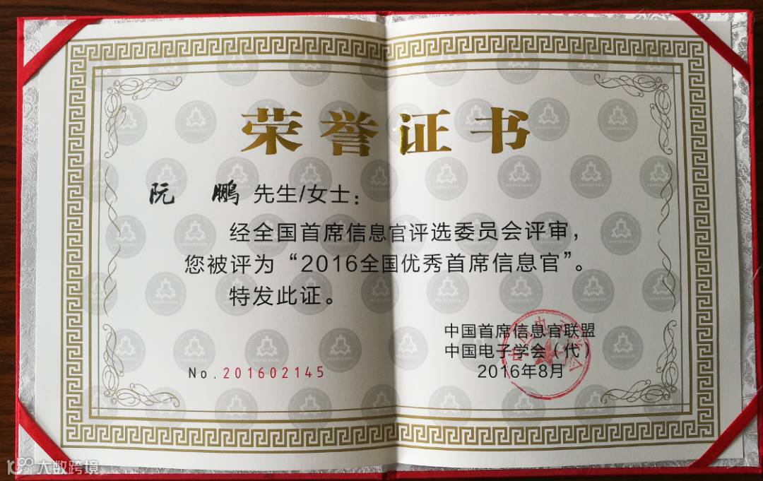 阮鹏荣获“2016全国优秀首席信息官”