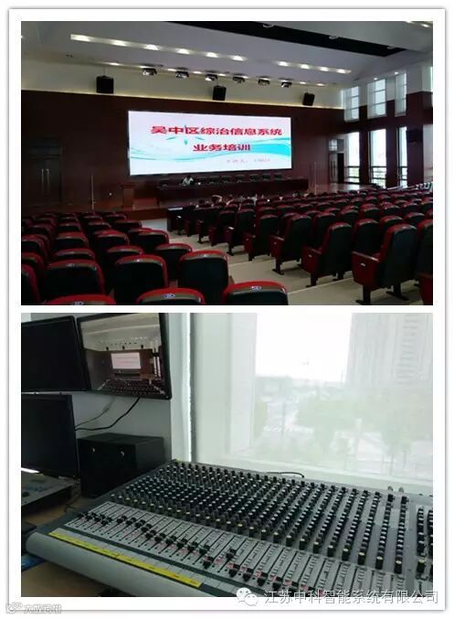 音控室包含:调音台、调光台、监听音响、LED同步显示、会场同步显示及无纸化桌牌系统为一体,以音控室为核心控制整个会议流程。