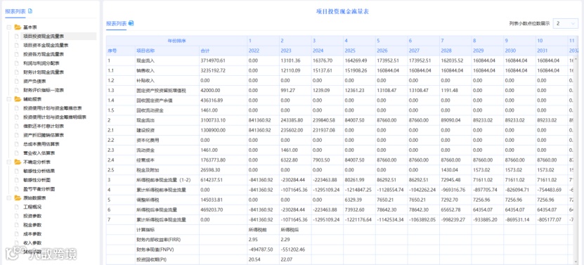 大唐能源技经云平台深度整合并分析了包括工程基本参数、投资参数、自有资金、融资资金、流动资金、成本参数、收入参数、折旧/摊销年限等关键数据。