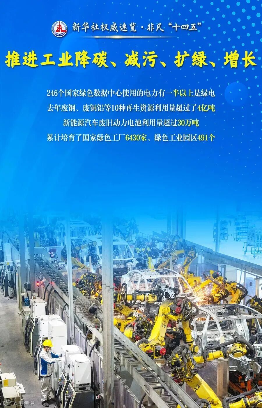 近年来,我国产业含“绿”量持续提升:电解铝行业每生产4吨铝,就有1吨是使用绿电生产的;246个国家绿色数据中心使用的电力有一半以上是绿电;累计培育国家绿色工厂6430家、绿色工业园区491个。