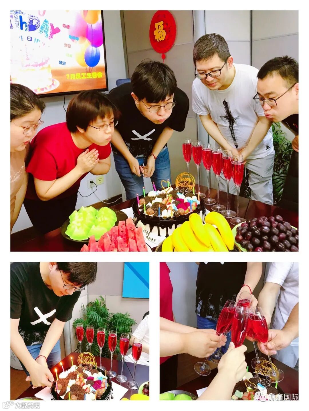 行政部为寿星们准备了生日蛋糕、贺卡、生日礼金、水果和香槟,送上最真挚的祝福,愿所有的幸福、所有的温馨、所有的好运都永远围绕在大家身边!祝福小伙伴们生日快乐!
