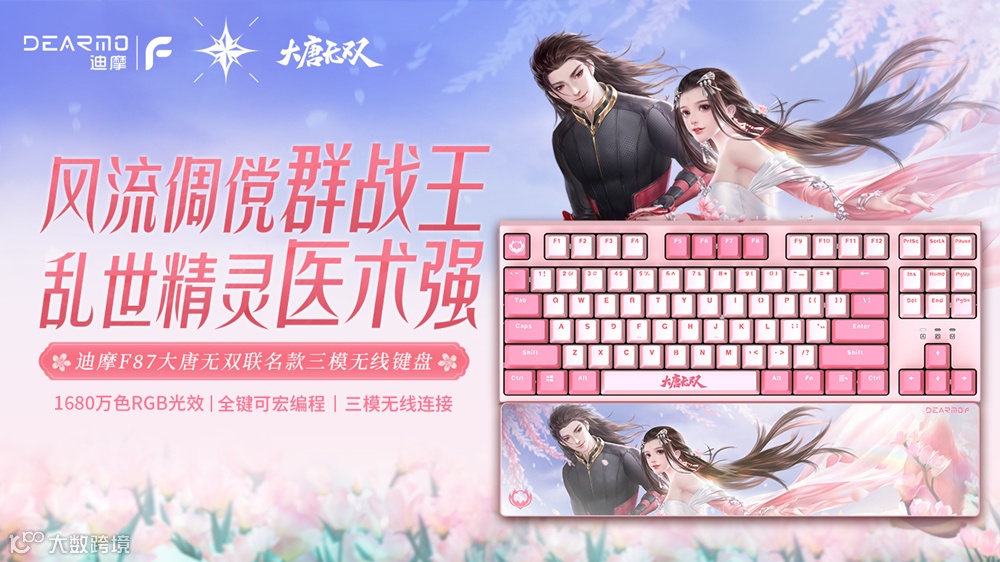 《大唐无双》作为网易第一热血群战网游,引得千千万万的网游大神共聚《大唐无双》重温大唐盛世。即日起,资深电竞游戏外设品牌——迪摩正式对外宣布,将与网易《大唐无双》达成战略合作,将为少侠们推出多款《大唐无双》联名款键鼠外设。其中迪摩F87大唐无双联名款三模无线键盘/迪摩FPW大唐无双联名款三模无线鼠标,两款产品上市!