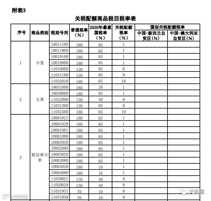 3. 关税配额商品税目税率表